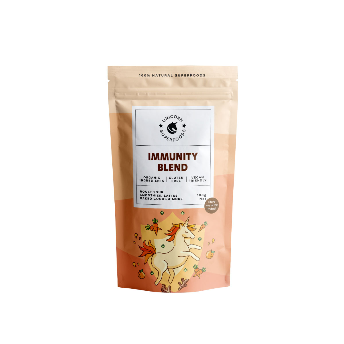 - Orange, Carrot, Mandarine, Lemon, Turmeric Extract, Monk Fruit Extract, Carrot Extract, *Ginger *denotes organic